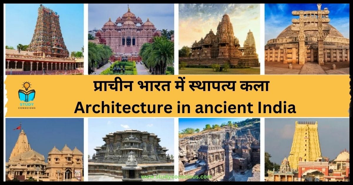 प्राचीन भारत में स्थापत्य कला (Architecture) अत्यंत समृद्ध और विविधतापूर्ण रही है। इसका विकास विभिन्न कालों में धार्मिक, सांस्कृतिक, और राजनीतिक प्रभावों के अधीन हुआ। इस कला ने मंदिरों, स्तूपों, गुफाओं, महलों, दुर्गों और नगर नियोजन में उत्कृष्टता प्राप्त की। यहाँ प्राचीन भारतीय स्थापत्य कला के प्रमुख पहलुओं का वर्णन है: