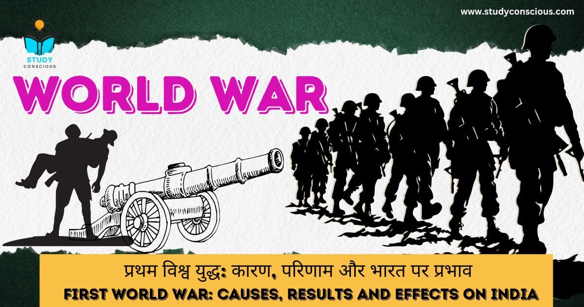 प्रथम विश्व युद्ध, जिसे प्रथम महायुद्ध भी कहा जाता है, एक वैश्विक युद्ध था जो 28 जुलाई 1914 से 11 नवंबर 1918 तक चला था। यह इतिहास के सबसे भीषण युद्धों में से एक था, जिसमें लाखों लोगों की जान गई थी। (First World War: Causes, Results and Effects on India)