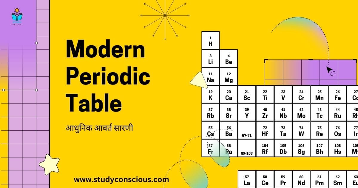The modern periodic table, also known as Moseley’s periodic table, is a systematic classification of chemical elements. It was introduced by British scientist Henry Moseley in 1913. आधुनिक आवर्त सारणी || Modern Periodic Table